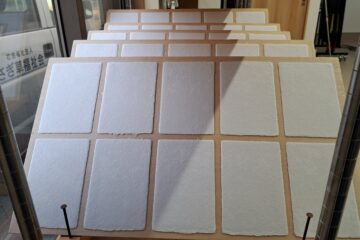 牛乳パックを再利用して1枚1枚丁寧に作っています。